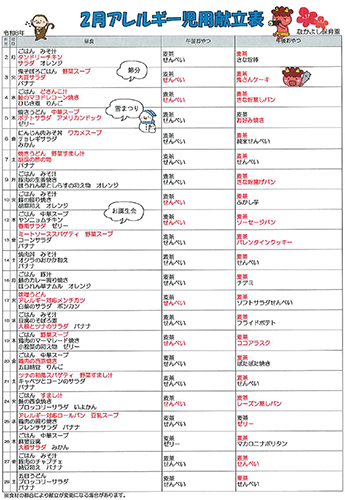 2月アレルギー児用献立表